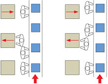 輸送通道兩側排布滑移式貨架,適合大批量多品種揀貨。